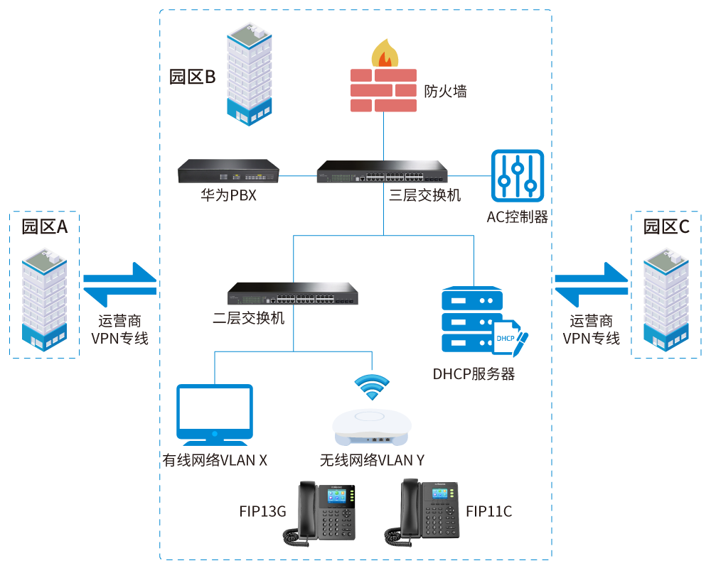 飞音IP话机采用高清语音处理技术,不同园区、楼宇及楼层间的无线话机之间通话清晰稳定,长久通话不掉线、不丢包。