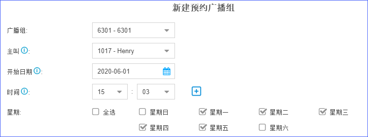 定时广播功能,支持用户自主上传与选择自定义播放音,通过“开始日期”、“时间”与“星期”设置来完成定时选项;到达预约时间,系统会自动播放广播,或拨打设定好的主叫分机让用户播放广播。
