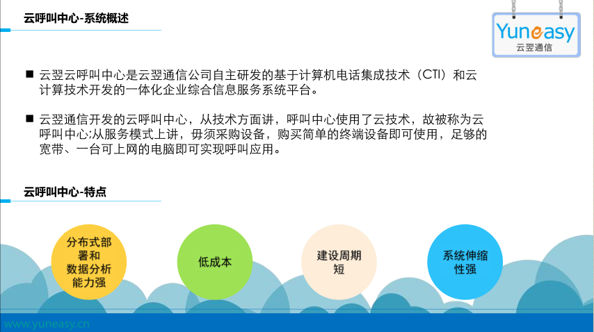 为了给游客提供更为周到的服务,旅通在线计划升级客服呼叫中心系统,系统需支持在线客服及微信客服功能,旅客通过旅通在线网站及公众号咨询,由座席人员解答;旅客拨打400电话时能听到语音导航,并且节假日与工作日可设置不同的导航内容;系统需要能够对客服人员工作进行监控、质检,从而查漏补缺,提高服务质量。根据旅通在线的需求,云翌资深商务经理为其提供云呼叫中心解决方案: