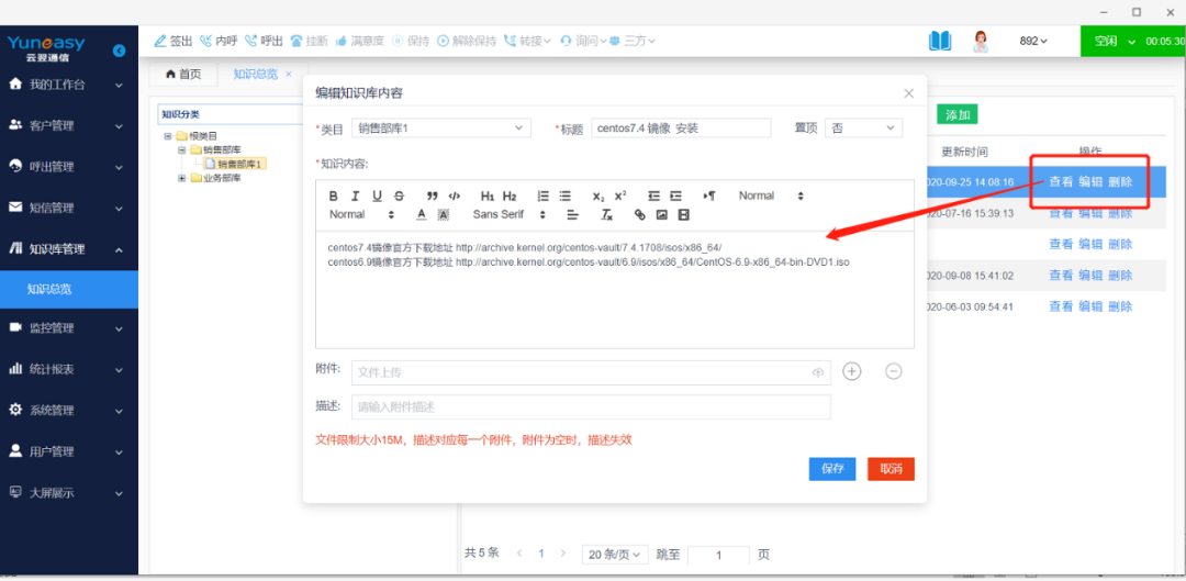 云翌MPCC呼叫中心知识库助手可以上传文字信息、图片、文件等多种形式的数据,为客户提供多样的数据呈现。