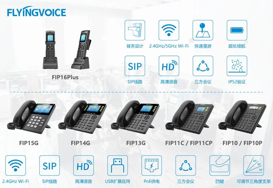 1、飞音IP话机通过无线、有线或者PoE网线供电等方式接入,可在各种网络环境下实现快速、灵活的安装部署;